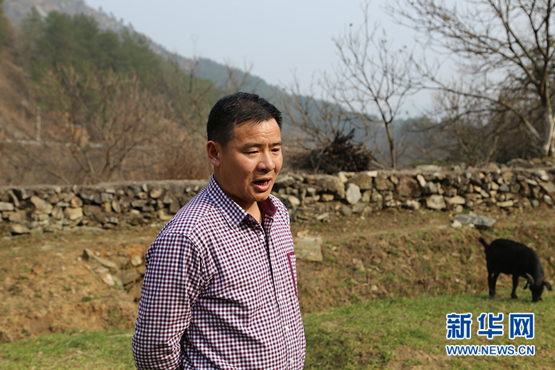 罗田县委办公室副主任、夏家铺村第一扶贫书记徐旭明介绍扶贫情况。(连迅 摄)