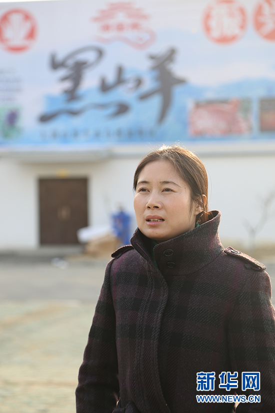 全国人大代表、罗田锦秀林牧专业合作社理事长、湖北名羊农业科技发展有限公司刘锦秀介绍带领贫困户脱贫情况。(闵任之 摄)