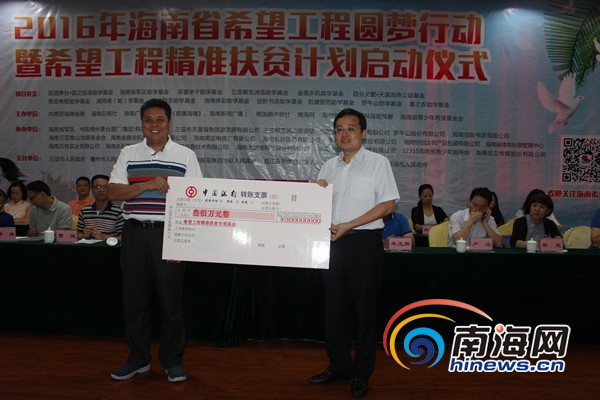 海南希望工程第一个精准扶贫专项基金。南海网记者 马伟元摄