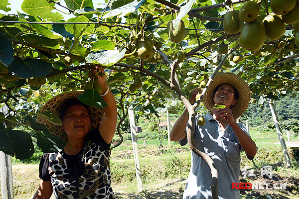 曹兴炳夫妇正在打理自己种植的猕猴桃。