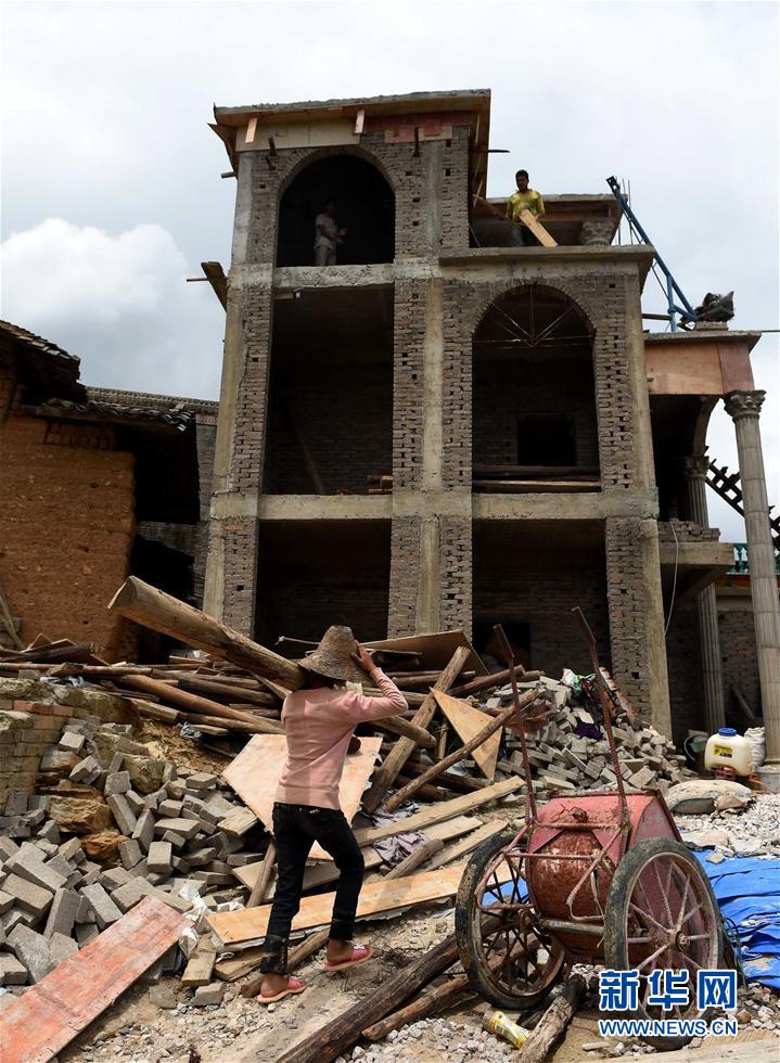 7月19日,弥勒市江边乡小倮份村的村民在修建新房。