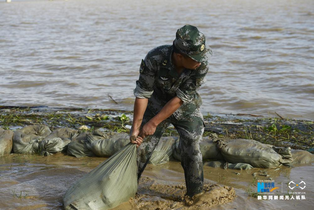 航拍:湖北汉北河超保证水位1.23米 现漫堤险情