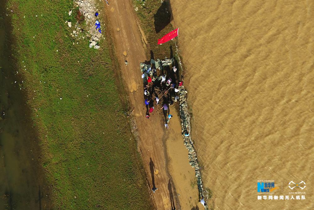 航拍:湖北汉北河超保证水位1.23米 现漫堤险情