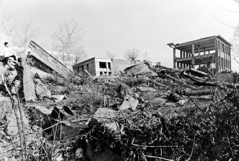 档案:1976年,河北唐山大地震遗迹。
