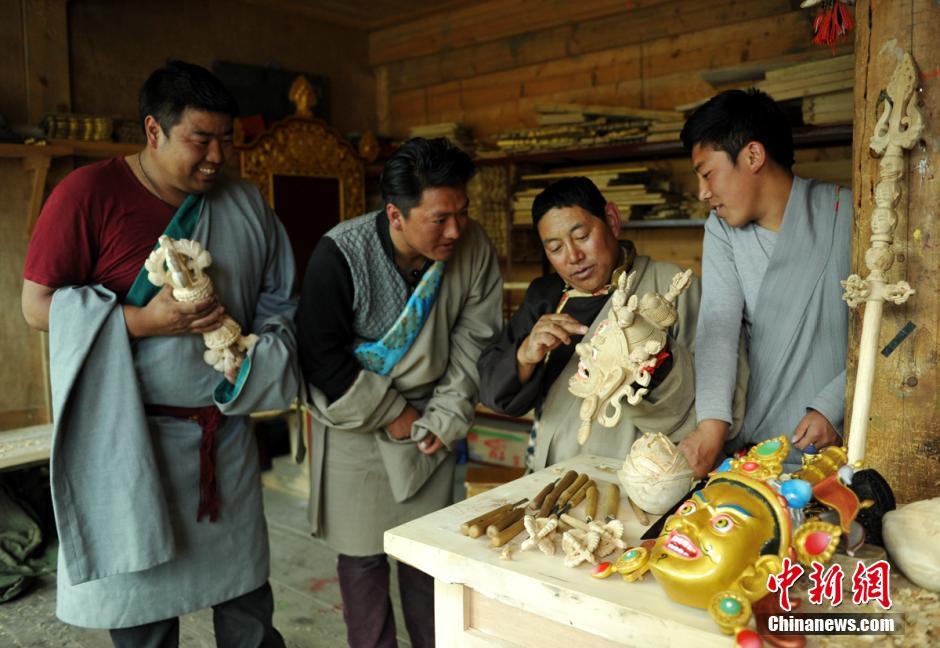 为了让麦宿地区藏族民间手工艺传承发扬下去,当地政府邀请老艺人向年轻藏族民众讲解和传授陶艺、泥塑、雕刻、编织等技艺。一方面让村民、无业人员、残疾人士学得一技之长,改变他们的生活和脱贫致富。另一方面,也挽救了当地的传统技艺,让这些技艺能一代一代传承下去。刘忠俊摄