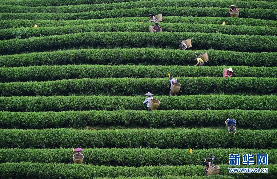 8月7日,贵州省遵义市余庆县松烟镇茶农在采秋茶。