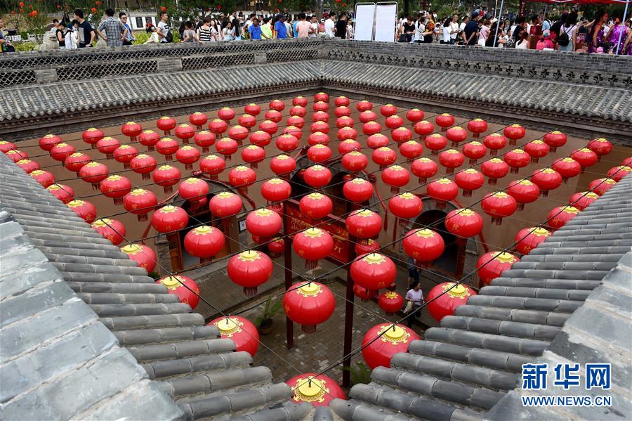 游客在河南省陕县张汴乡北营村地坑院参观游览(8月9日摄)。