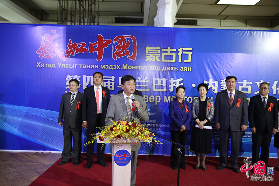 2016年8月18日,“感知中国·蒙古行——第四届乌兰巴托·内蒙古文化周”开幕式在蒙古国首都乌兰巴托市举行。蒙古国教育文化科学体育部副部长奥特根巴雅尔在开幕式上致辞。中国网郑文华 摄