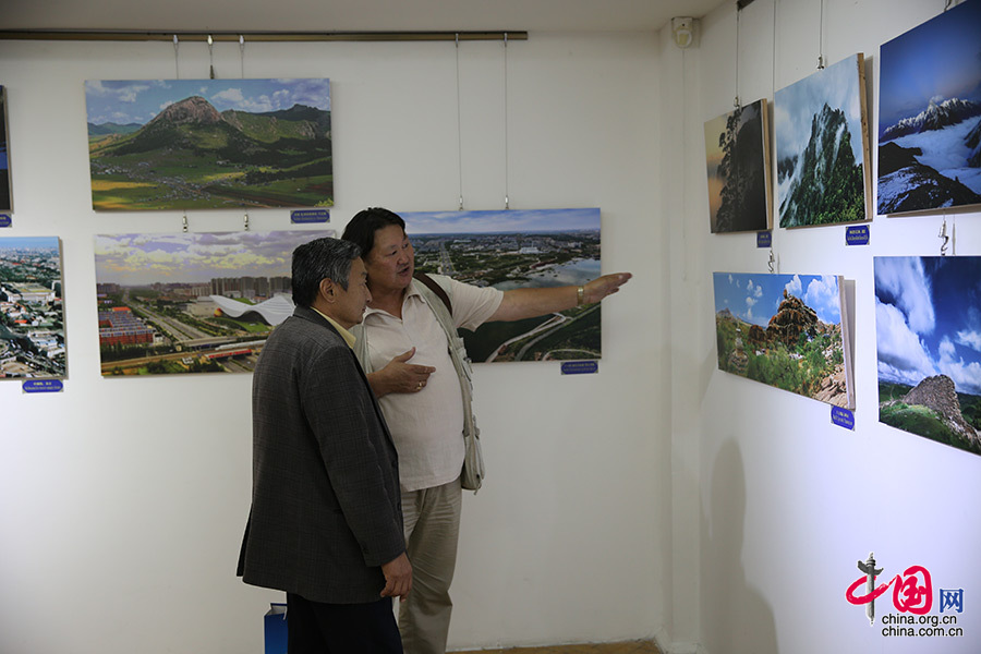 2016年8月18日,“感知中国·蒙古行——第四届乌兰巴托·内蒙古文化周”开幕式在蒙古国首都乌兰巴托市举行。这是蒙古国观众参观“美丽中国图片展”。中国网 郑文华 摄
