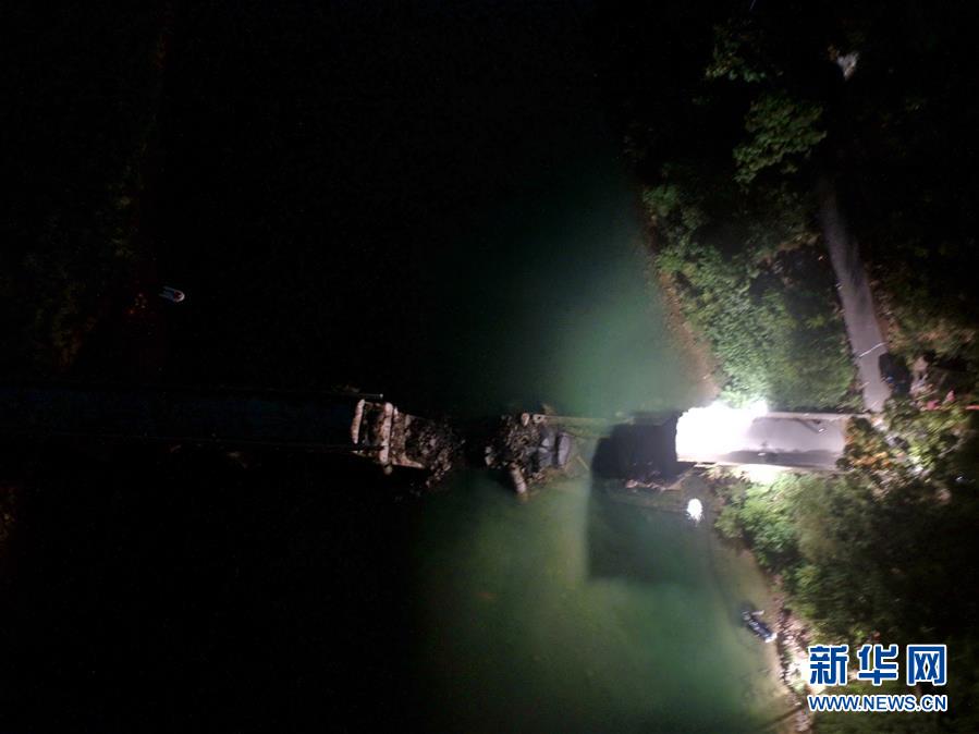 这是发生坍塌的姜家渡老桥桥头(8月22日摄)。 8月21日晚20时30分许,江西省九江市修水县姜家渡老桥发生坍塌,一辆电动车和一辆面包车坠桥。截至22日1时,事故已经造成3人死亡2人受伤。目前,事故具体原因还在进一步调查中。新华社记者周密摄