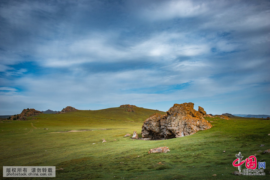 辽阔的草场不知为何而冒出巨岩。祁军 摄