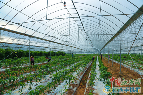 蔬菜基地内的辣椒长势喜人