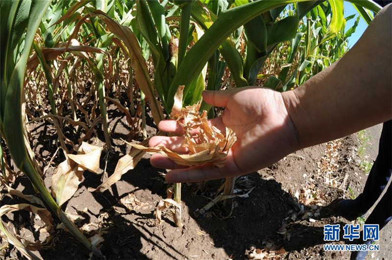 新华社哈尔滨8月29日电(记者王建) 在黑龙江省龙甘公路两侧,农作物以玉米为主。玉米株已有一人多高,上部叶片卷起,下部大片干枯,有的干脆就没结棒,即使有棒也是干瘪。在一些旱情严重地区,玉米叶用手一撮就碎,用火一点就可以烧着。