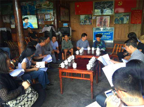 黄承伟一行分成四个小组分别入户调查十八洞村贫困户生产生活情况,并详细填写入户调查问卷