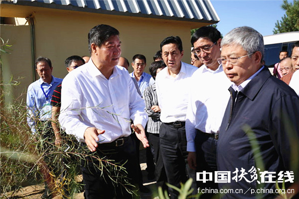 国务院扶贫办主任刘永富考察库布其治沙扶贫项目。