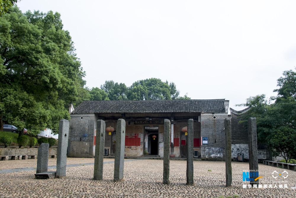 图为钓源古村欧阳氏宗祠前的石碑,诉说着古村的千年历史故事。新华网 杨益民摄