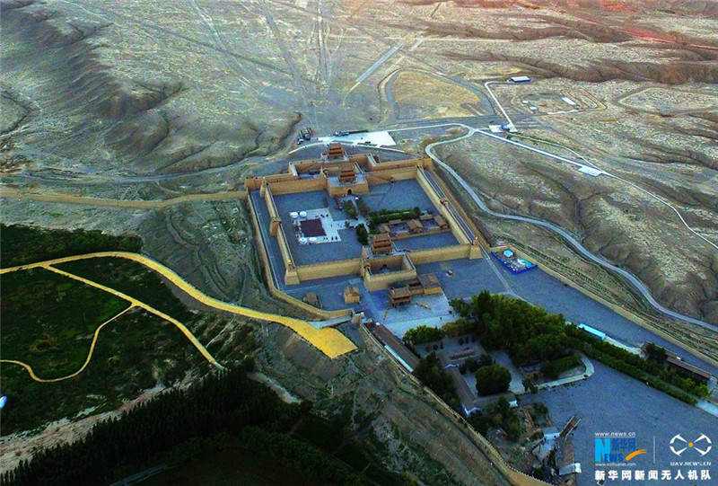 嘉峪关由内城、外城、城壕组成,并与长城连为一体。现存关城总面积33500余平方米,内城墙上建有箭楼、敌楼、角楼、阁楼、闸门等共十四座,关城内建有游击将军府、井亭、文昌阁,东门外建有关帝庙、牌楼、戏楼等。关城周长733米。关城正中有一官井,旧有亭,今已废。新华网王生元摄 飞手 信江