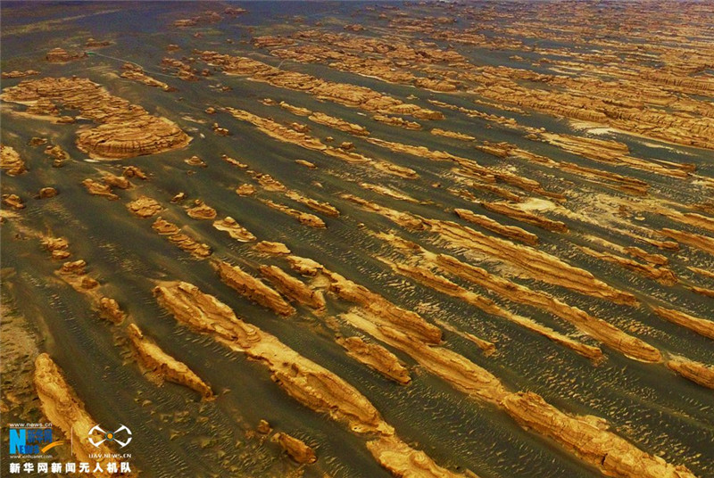 在中国内陆荒漠里,有一种奇特的地理景观,它是一列列断断续续延伸的长条形土墩与凹地沟槽间隔分布的地貌组合,被称为雅丹地貌。新华网 信江摄飞手 王生元