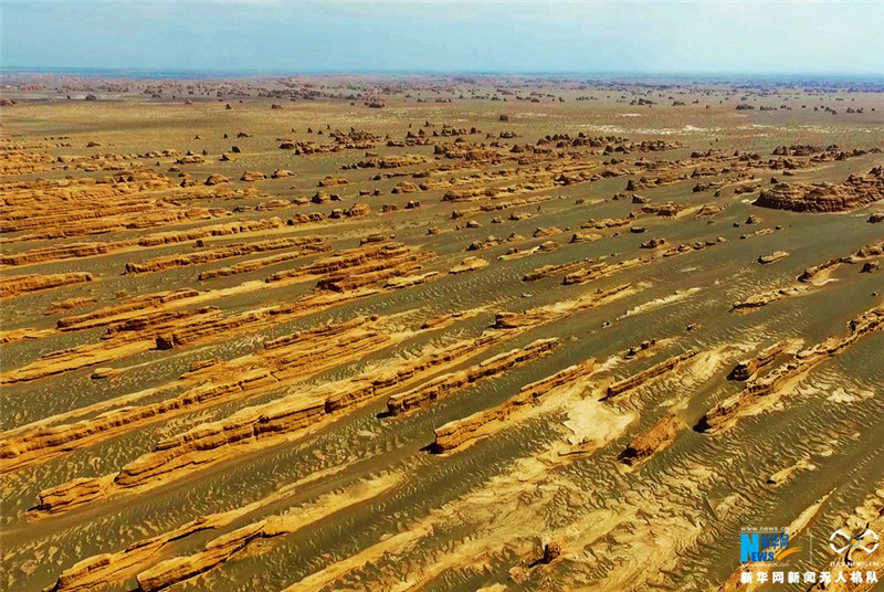 国家4A级景区的敦煌雅丹国家地质公园位于敦煌市西北约180公里处,奇特的地质地貌吸引了《英雄》、《天脉传奇》、《齐天大圣孙悟空》等影视剧组选景拍摄。新华网信江摄 飞手 王生元