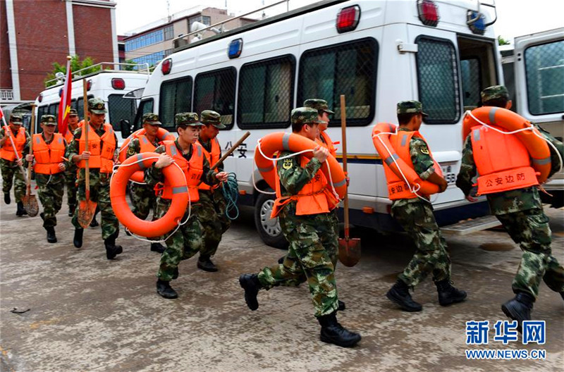 9月27日,福州市边防支队机动大队官兵在集结赶赴海边值守地点。当日,福建省启动防台风Ⅱ级响应,有关部门提醒海边作业人员注意安全转移,做好渔船进港、电力设施防护、关闭沿海景区等工作。 9月27日12时,今年第17号台风“鲇鱼”中心位于距离厦门480公里的洋面,近中心最大风力15级(强台风级),并以每小时20公里左右的速度向西北偏西方向移动。预计将于28日凌晨到上午在福建惠安到漳浦沿海登陆。新华社记者张国俊摄