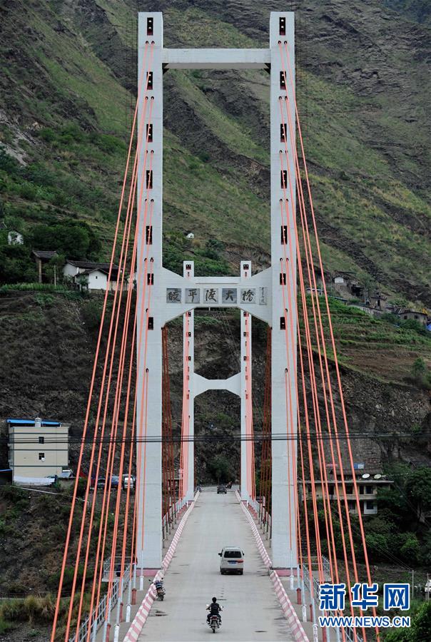 位于云南禄劝县与四川会理县交界处金沙江上的皎平渡大桥(2011年6月15日摄)。1935年5月,红一方面军在36名船工的帮助下,胜利渡过了金沙江,摆脱了国民党军队的围追堵截,取得了战略转移中具有决定意义的胜利。新华社记者蔺以光摄