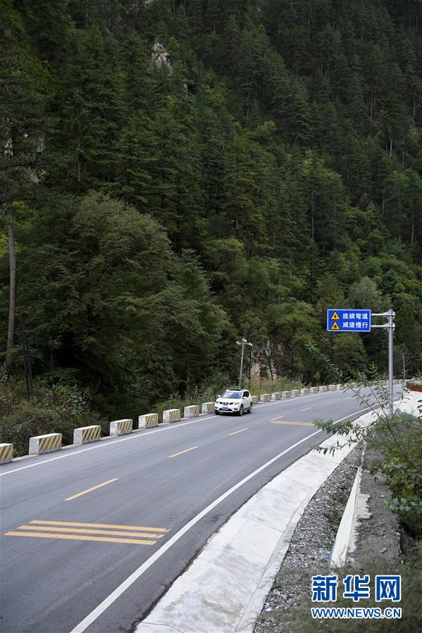 甘肃省迭部县腊子口风景区的210省道(9月14日摄)。腊子口位于甘肃迭部东北的铁尺梁下,是红军长征由川入甘的必经之路,周围群山耸立,峡道宽仅8米。1935年9月16日,红军向天险腊子口发起冲锋,依靠突击队员攀上陡峭的崖壁,摸到敌人后方,最终攻克天险,打开了北上的通道。新华社记者王鹏摄