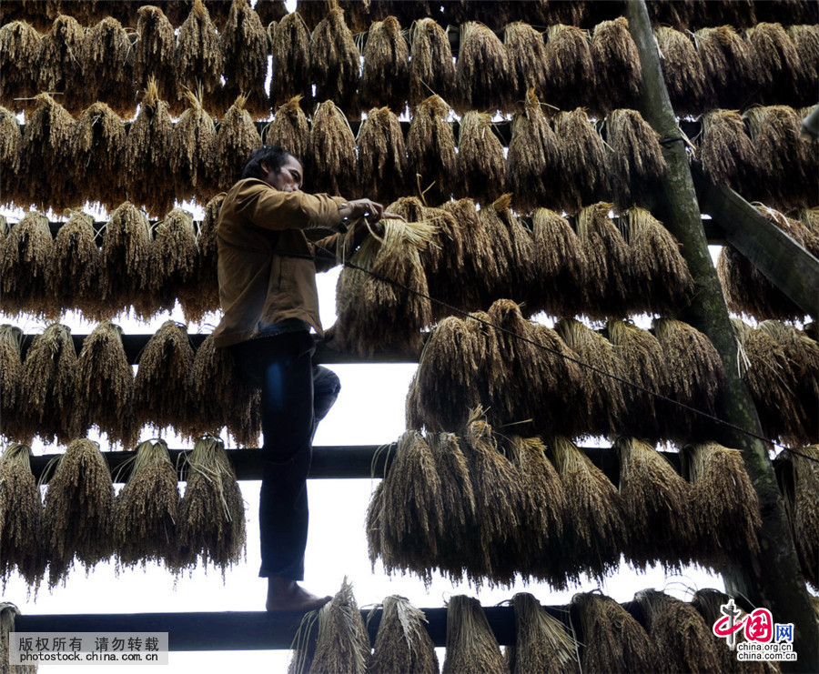贵州黔东南州:独特的水稻晾晒方式——“禾晾”