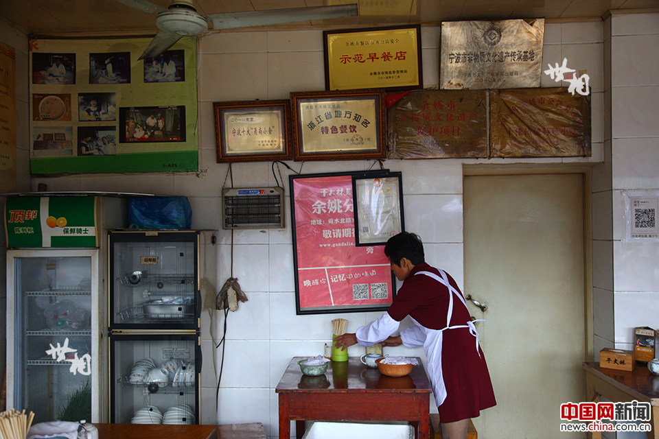 小店的墙上挂着各类荣誉牌匾,最让干大林夫妻俩骄傲的就是宁波市非物质文化遗产传承基地这块牌匾。