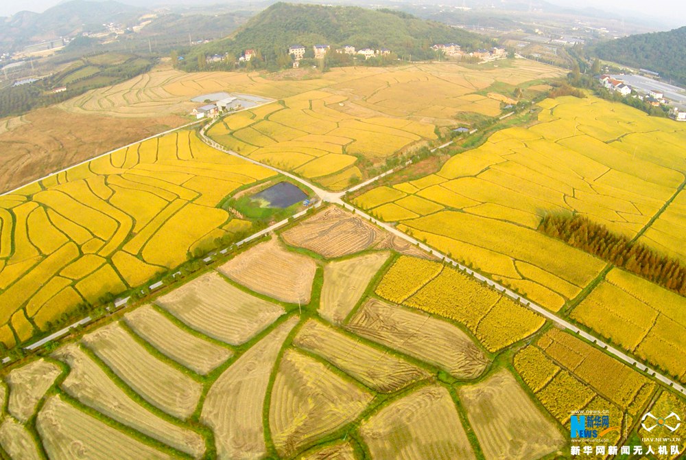 大地乐章:航拍浙江湖州金秋稻田喜丰收