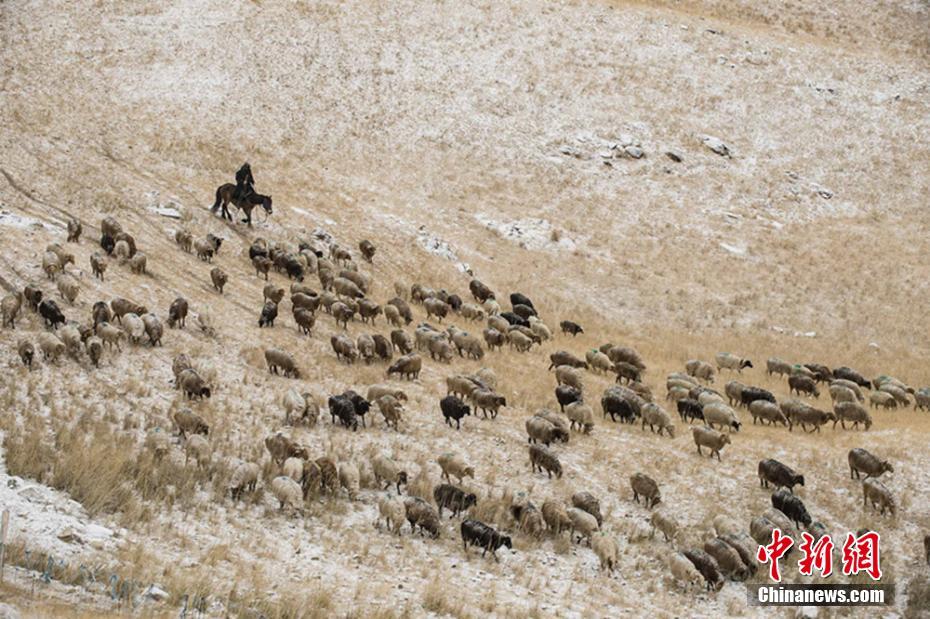 连日来,地处天山西段的昭苏大草原连续降雪,新疆伊犁昭苏县牧民忙着在大雪封山之前,将牲畜从山上转移到阿合牙孜沟冬牧场。昭苏县阿合牙孜沟是伊犁河谷中的河谷,有着昭苏高原上的“桃花源”的美誉,沟内气候宜人,冬暖夏凉,牧草丰盛,使这里成为肥美的冬季牧场,每年11月,牧民陆续将牲畜迁入此地放养,最多可以达到40万只左右。秦杰摄