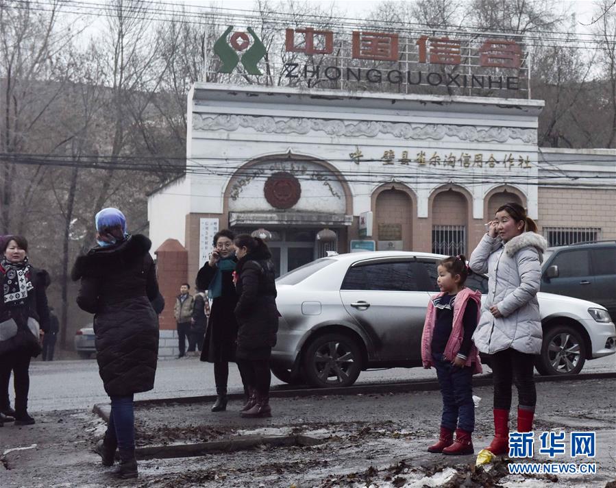 12月8日,在呼图壁县雀尔沟镇,当地居民走上街头躲避余震。