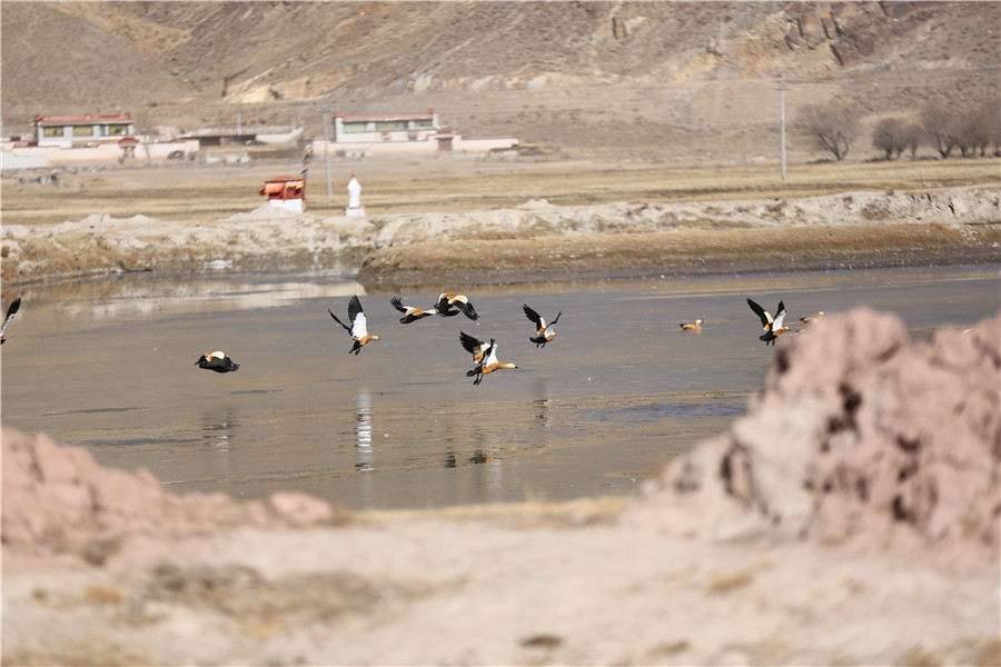 林周县位于拉萨北部70公里处,其大片的河浜湿地,是黑颈鹤、斑头雁、赤麻鸭等西藏许多珍贵鸟类越冬的主要栖息地。 王东海/摄