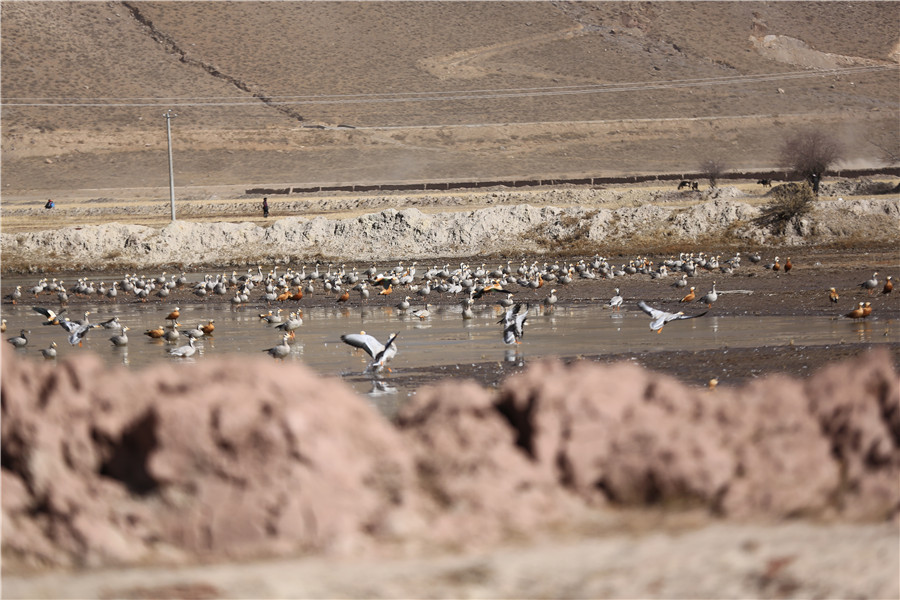 林周县位于拉萨北部70公里处,其大片的河浜湿地,是黑颈鹤、斑头雁、赤麻鸭等西藏许多珍贵鸟类越冬的主要栖息地。 王东海/摄
