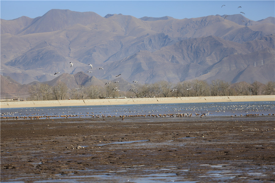 林周县位于拉萨北部70公里处,其大片的河浜湿地,是黑颈鹤、斑头雁、赤麻鸭等西藏许多珍贵鸟类越冬的主要栖息地。 王东海/摄