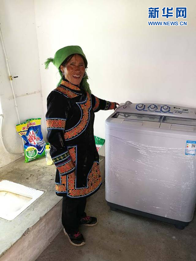 金阳县保尔村贫困户阿米木体如数家珍地介绍她的新房和电器设备,说洗衣服再不用手洗了。