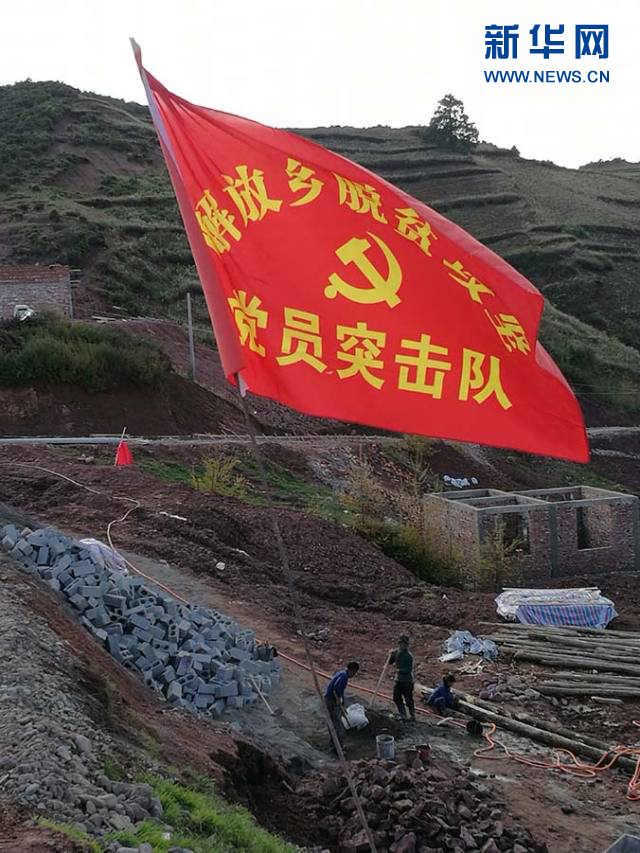 在海拔2000多米的昭觉县解放乡,记者远远看到,一面“解放乡脱贫攻坚党员突击队”的红旗迎风招展。