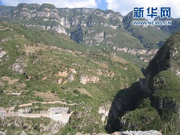 甘洛县乌斯大桥乡二坪村上山路线图。图中左上角悬崖之上、白云之下即是二坪村。步行要四小时。