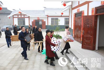 1月24日,白马村“挪穷窝、住新房、过新年”易地扶贫搬迁集中乔迁仪式隆重举行,15户像游宗燕一样的贫困户搬进新居。乔迁仪式现场,入住新房的村民还欣赏了城区文艺工作者献上的精彩的文艺节目。让游宗燕感动的是,志愿者还帮他家挂灯笼、贴对联、搬运家具。在随后的住新房过新年坝坝宴上,他与15户新邻居举杯痛饮,敞怀庆祝,说不尽的畅快。