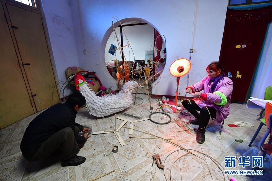 2月8日,河南省灵宝市焦村镇南安头村的村民在制作金鸡花灯。南安头村是河南省灵宝市焦村镇远近闻名的“灯笼村”,村里100多户农民从事灯笼制作。临近元宵节,村民们加紧赶制多种造型花灯,供应节日市场。新华社记者冯大鹏 摄