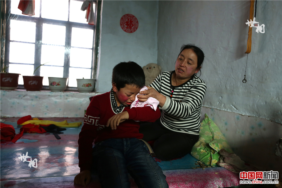 10岁高跷队队员薄俊宏回到家累地直哭。踩高跷是非常消耗体力的。妈妈劝他,男子汉不要轻易掉眼泪。