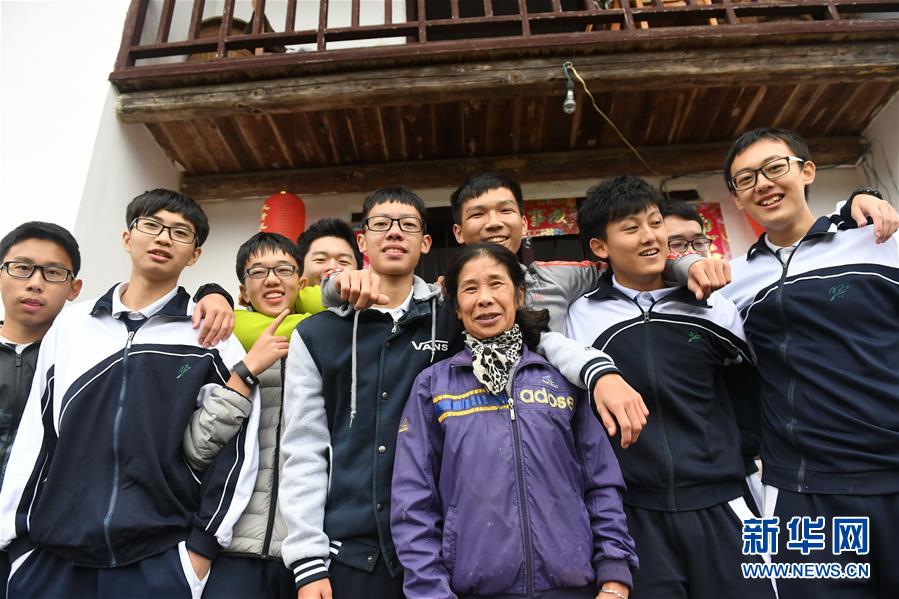 井冈山茨坪镇大井村开办农家乐的贫困户邹香莲(前右三)与前来寄宿的学生们合影(2016年11月10日摄)。 “在扶贫的路上,不能落下一个贫困家庭,丢下一个贫困群众。”——这是中国共产党人的庄严承诺、为民情怀和执政信念。莽莽山野,悠悠岁月。穿越承载荣光与热血的时空,在“中国革命摇篮”井冈山革命根据地创建90周年之际,伟大的井冈山人民向着全面小康和伟大复兴中国梦的美好图景,发起新的冲锋。新华社记者周密摄