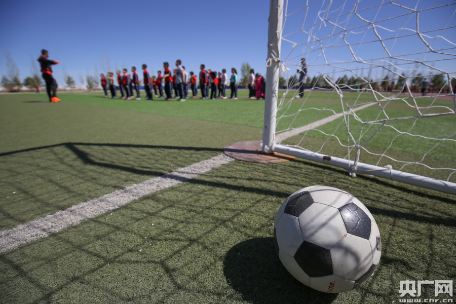 在亿利东方学校的操场上,农牧民的孩子们正在做着运动。