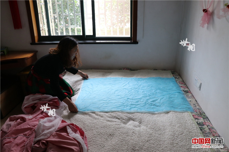 每次铺床的时候,刘晓林会在床上一块固定的地方铺上一次性塑料垫单。她说:“孩子每天都是在这块地方尿床,铺上垫单可以防止弄湿下面的垫被。”