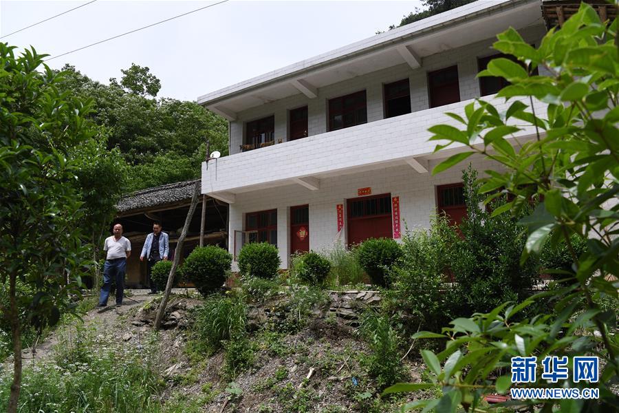 5月23日拍摄的汉水源村村民姚金禄的新房(右侧),左侧是他家五年前的旧屋。位于长江支流汉江发源地的陕西省宁强县汉源街道办汉水源村,自2013年开始利用生态优势,走出一条以发展生态食品生产和生态旅游的脱贫之路。这个村建有茶叶、银杏园区780多亩,养殖大鲵5000余尾、土蜂300余箱,种植中药材80多亩,发展食用菌12万余袋,产业扶贫初具规模。2016年,全村538户2009人靠生态种植和养殖,人均年收入达5260元。新华社记者陶明 摄