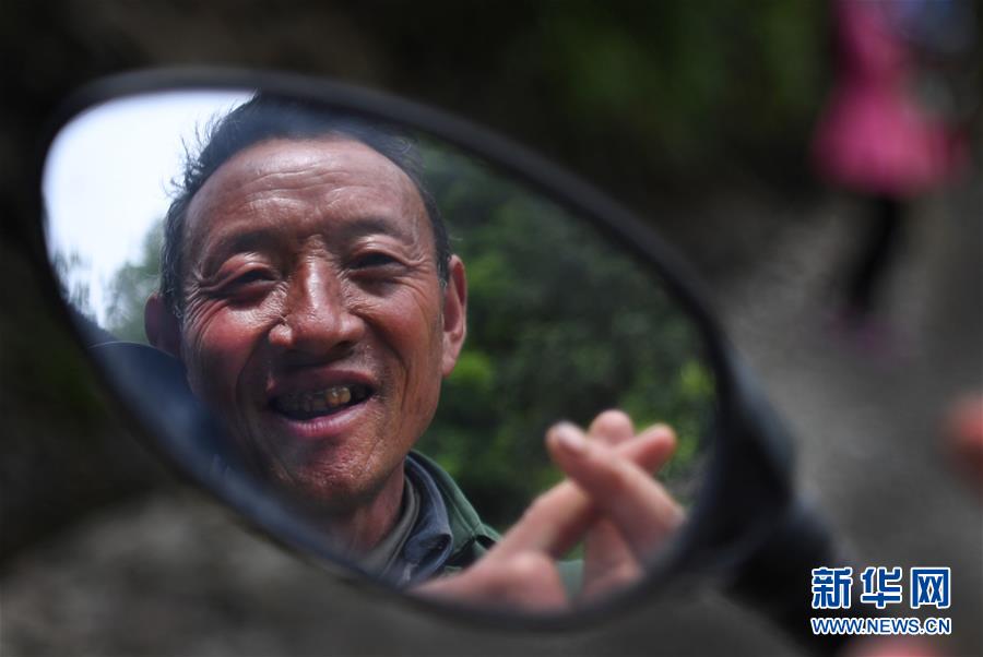 5月23日,骑着电动车的汉水源村村民姚金禄向驻村干部讲述已经建成的新牛舍将饲养10头牛的计划。位于长江支流汉江发源地的陕西省宁强县汉源街道办汉水源村,自2013年开始利用生态优势,走出一条以发展生态食品生产和生态旅游的脱贫之路。这个村建有茶叶、银杏园区780多亩,养殖大鲵5000余尾、土蜂300余箱,种植中药材80多亩,发展食用菌12万余袋,产业扶贫初具规模。2016年,全村538户2009人靠生态种植和养殖,人均年收入达5260元。新华社记者陶明 摄