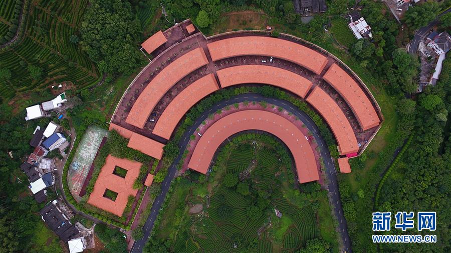这是无人机航拍的广东梅州市雁洋镇客家文化新村——长教新村(6月13日摄)。