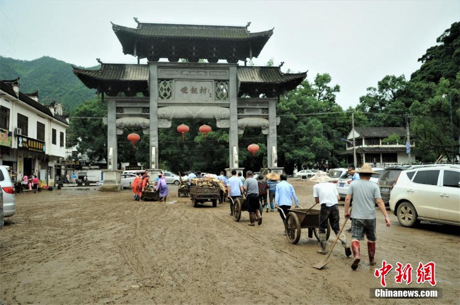 江西省婺源县晓起村,村民积极生产自救,清除淤泥垃圾。6月26日摄。文/王剑 图/占斌