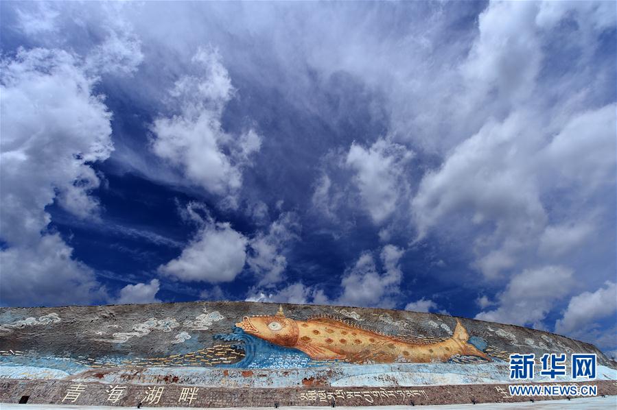 这是位于湟鱼洄游量最大的青海省海北藏族自治州刚察县境内的一幅山体彩绘——青海湖裸鲤的生命旅程(6月23日摄)。