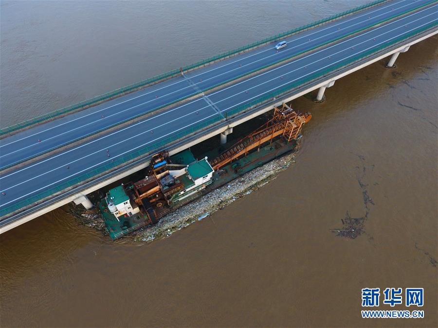 7月3日晚10时许,广西梧州市龙圩镇挖沙船因洪水冲击走锚往下游漂流,与马梧高速浔江特大桥发生碰撞,卡在大桥桥墩处。记者在现场看到,挖沙船上已没有人员,事件无人员伤亡,相关部门进行了紧急处理。目前,交警部门已对大桥实行单边通行。