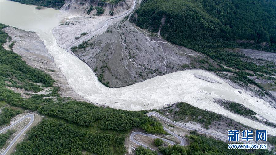 航拍西藏自治区波密县易贡乡扎木弄沟易贡滑坡现场(6月28日摄)。
